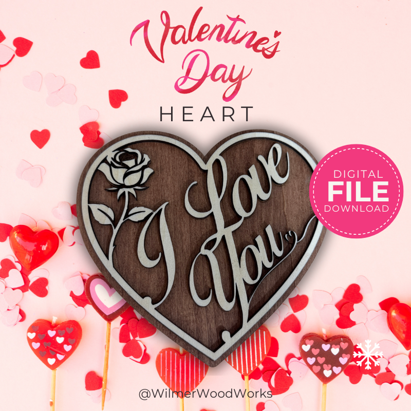 A sweet laser-cut Valentine’s Day heart project with layered “I Love You” text and rose detail. Beginner-friendly, customizable, and perfect for gifting!