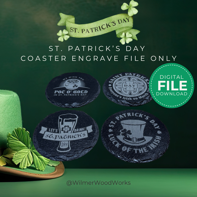 St. Patrick’s Day Coaster SVG Bundle | 9 Laser Cut Files for Slate or Wood | Glowforge, LightBurn & xTool Ready